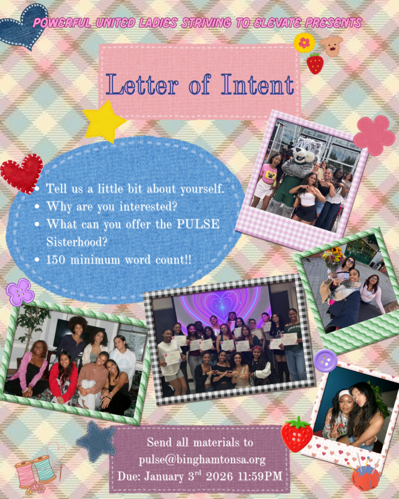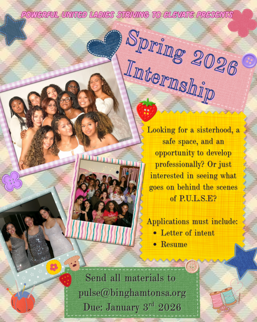 PULSE was born out of a vision by Mrs. Joanna Cardona-Lozada, who saw the need for mentorship and support for women of color on Binghamton’s campus. She wanted a space where successful, college-educated women of color could come together to discuss real-life topics like self-esteem, empowerment, and career growth.